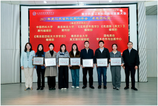 会议期间,江苏省科技期刊学会公布了《关于表彰2025年度江苏省科技期刊学会“卓越团队奖”的决定》,我校期刊部荣获“2025年度卓越团队奖”,这是我校期刊部第二次荣获“卓越团队”奖励,是期刊界对我校办刊团队努力工作、默默奉献,坚持高质量、特色化发展,走专业化办刊道路的充分肯定,也是对我校期刊在数字化传播领域努力耕耘,引领省科技期刊新媒体建设的鼓励。